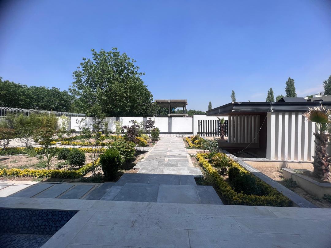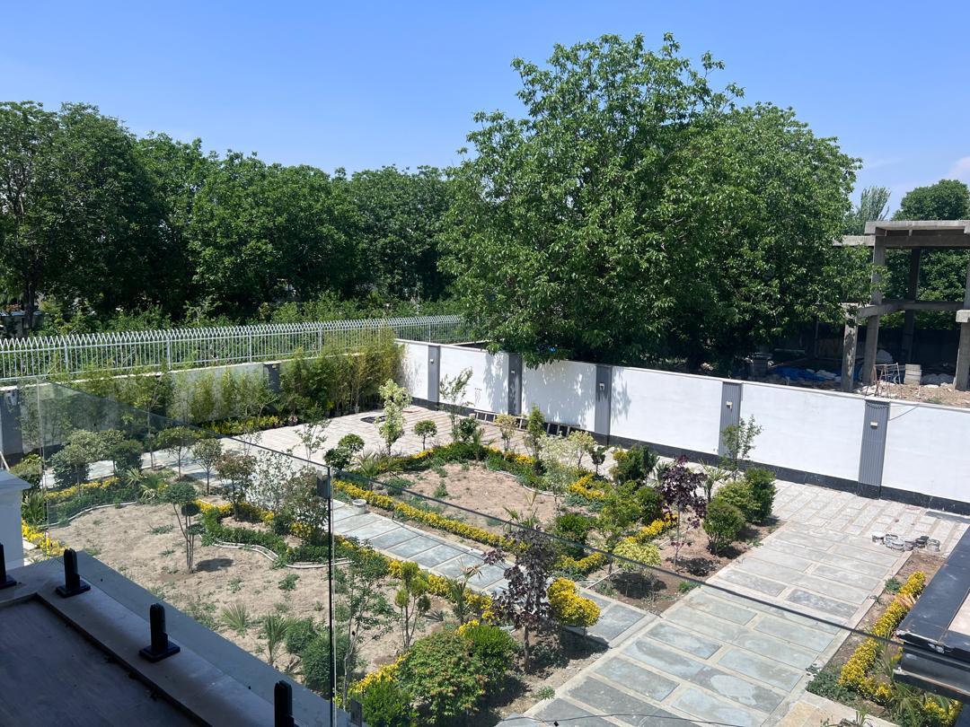 محوطهسازی (Landscaping) این باغ ویلا با دقت و سلیقه انجام شده است. مسیرهای پیادهروی سنگفرش شده، باغچهکاریهای منظم با درختان زینتی و دیوارهای بلند و ایمن (مجهز به شاخگوزنی و حفاظ) حریم خصوصی کاملی را ایجاد کردهاند. وجود یک آلاچیق دنج در محوطه، فضایی عالی برای شبنشینیهای خانوادگی فراهم کرده است.