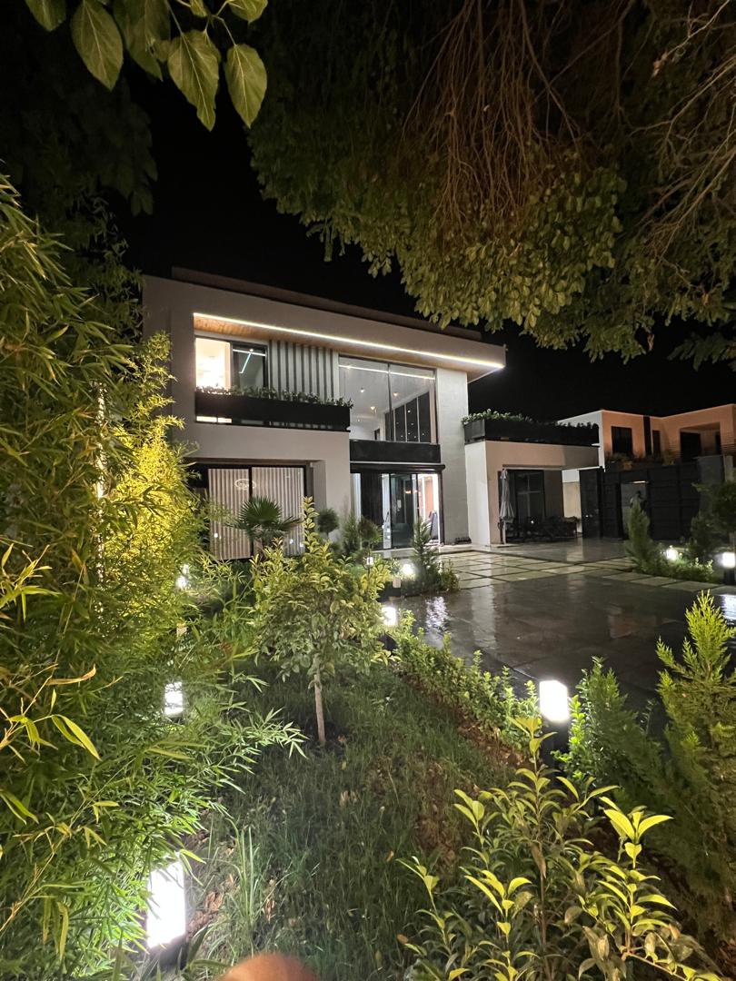 - ترکیب معماری معاصر و فضای سبزِ ویلا، تجربهای آرامشبخش شبیه به سکونت در ییلاق فراهم میآورد.