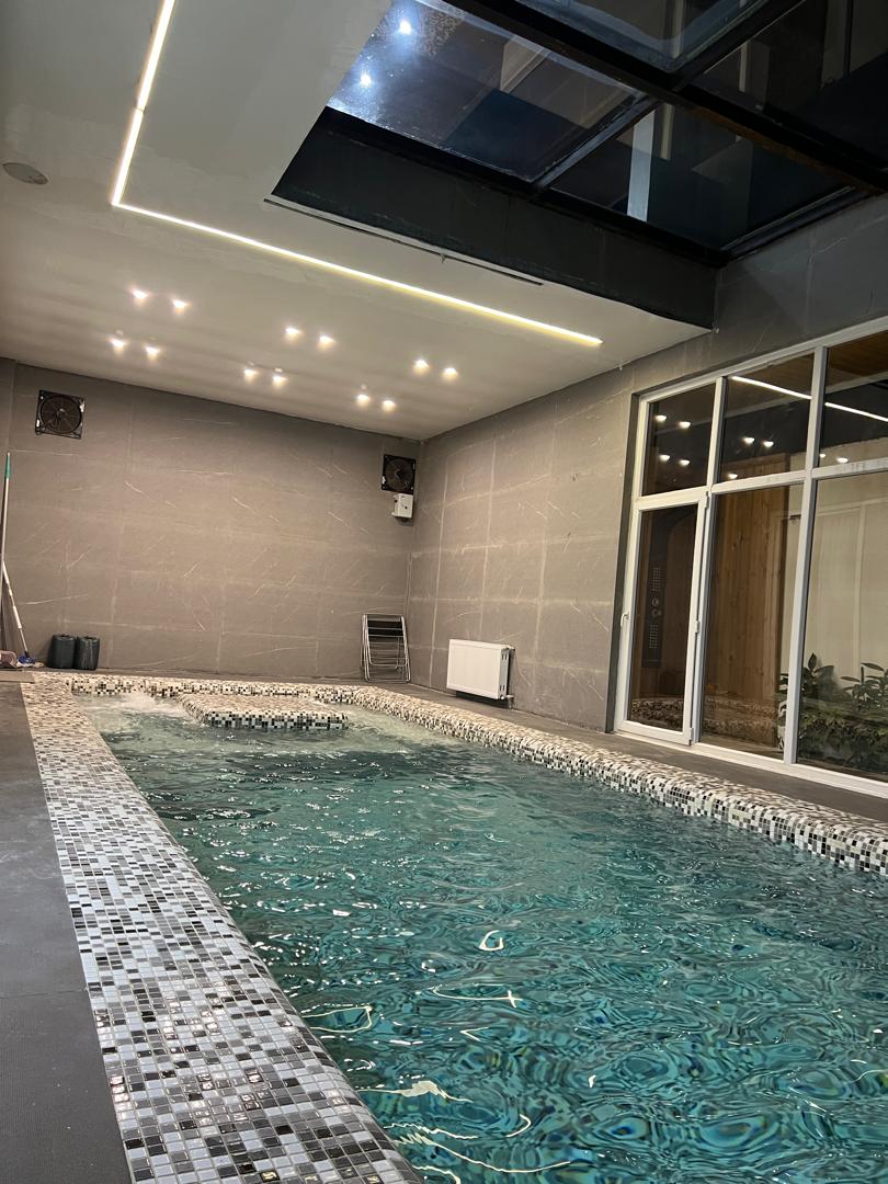 - ویلا دارای استخر سرپوشیده چهارفصل با کاشیکاری موزاییکی، سیستم روشنایی سقفی و امکان بهرهبرداری در تمام فصول سال است.